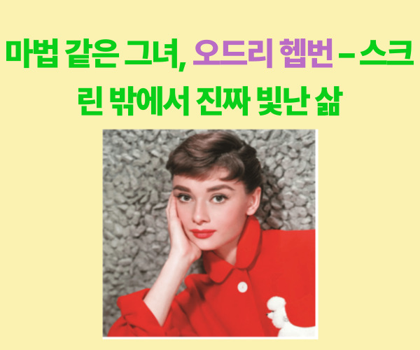 오드리 헵번은 ‘로마의 휴일’로 사랑받은 영화 스타이자, 세상 가장 고통받는 아이들을 품에 안은 인도주의자였습니다. 그녀의 삶을 따라가며, 진짜 아름다움이란 무엇인지 다시 묻게 됩니다.
