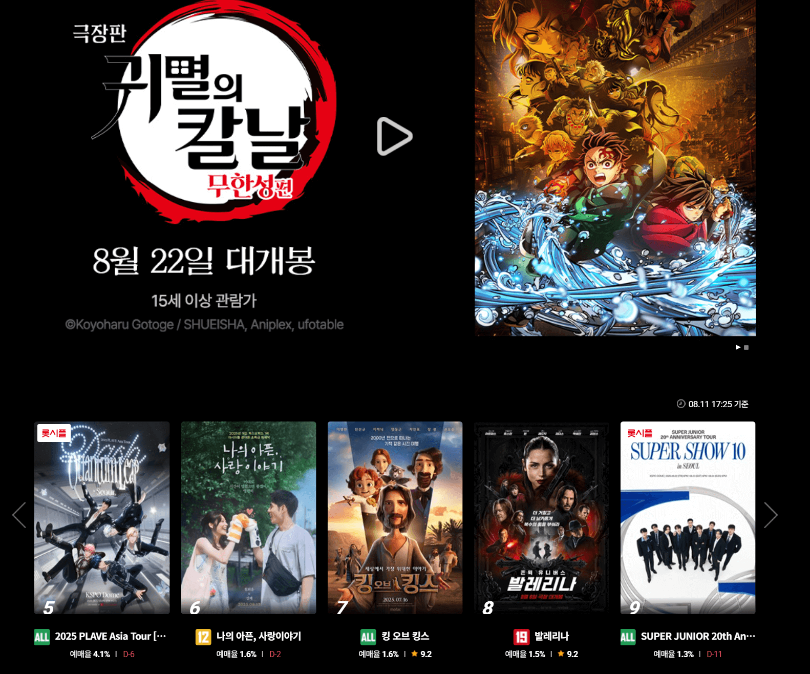 | 극장판 귀멸의 칼날: 무한성편 | 애니메이션/액션 | 123분 | 8월 22일 개봉 |