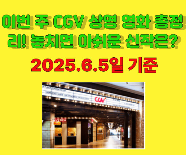 이번 포스팅에서는 2025년 6월 첫째 주 기준, CGV 주요 상영작을 소개해드리며, 예매율과 특징까지 한눈에 정리해 드리겠습니다.