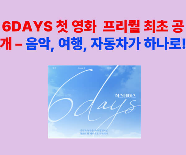 ‘6DAYS’ 프리퀄은 DAY6의 새로운 도전이자, 팬들과 함께 떠나는 여행의 시작입니다. 음악을 매개로 자동차, 여행, 일상이 어우러진 이 프로젝트는 단순한 홍보나 예능이 아닌, 진심이 담긴 예술적 시도라 할 수 있습니다. 앞으로의 정식 개봉작에서 어떤 이야기가 펼쳐질지 더욱 기대가 됩니다.